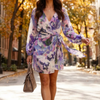 Women's Floral Print V-Neck Wrap Mini Dress